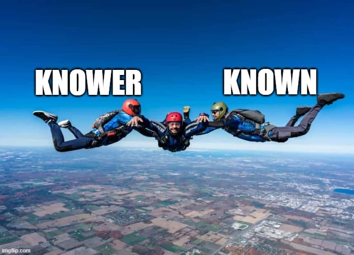 The knower and the known enter into the scene at the same time, and depart the scene at the same time.