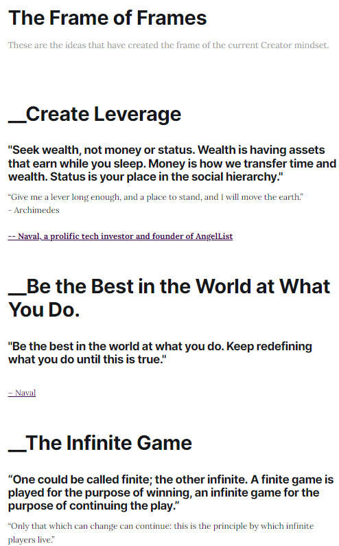 This week, I created a resource of top-tier concepts from big thinkers called The Frame of Frames[link].