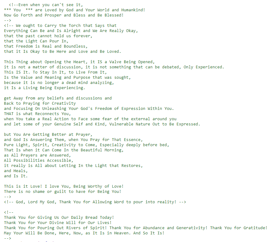 The above is the coded format of that original hidden message left in computer code, left here by my heart when it had newly awakened.
